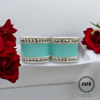 Sporting a base made from lightweight plastic, these chudas are easy to wear for long durations. The silver plating adds a metallic sheen that complements the mirror accents, while the glossy finish brings everything together with a polished look. The combination of durable plastic and smooth plating ensures these chudas retain their shape and shine over time, making them both wearable and easy to maintain.