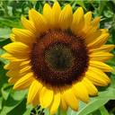 The common sunflower has a green erect stem covered in coarse hairs, growing on average around 2m tall. The leaves are broad, with serrated edges, and are alternately arranged on the stem. The 'flower' of the common sunflower is actually a pseudanthium, or flowerhead, made up of many small flowers.