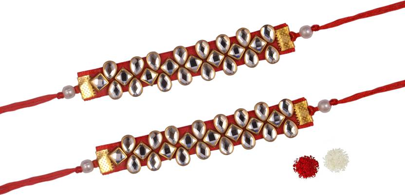 Designer RAKHISET-5467 Assorted Rakhi Set (2 rakhi , 1 chawal roli)