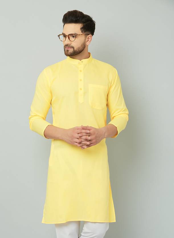Men Solid Cotton Silk Straight Kurta (Light Blue)