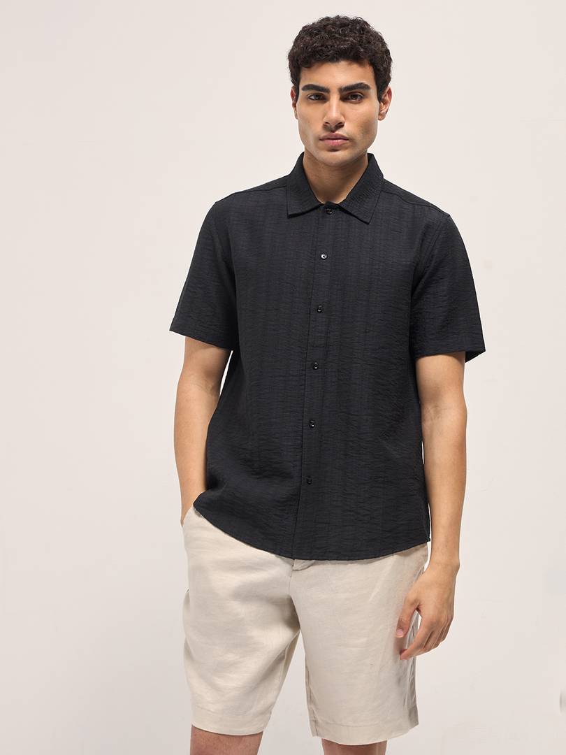 THE BEAR HOUSE Men Solid Casual Black Shirt