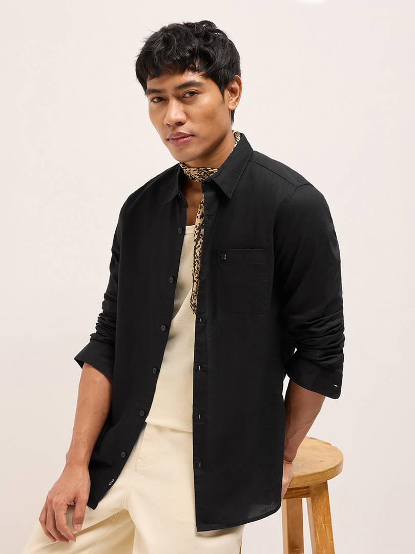 THE BEAR HOUSE Men Solid Casual Black Shirt