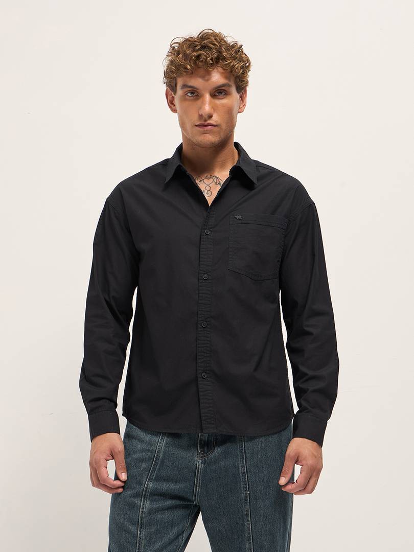THE BEAR HOUSE Men Solid Casual Black Shirt
