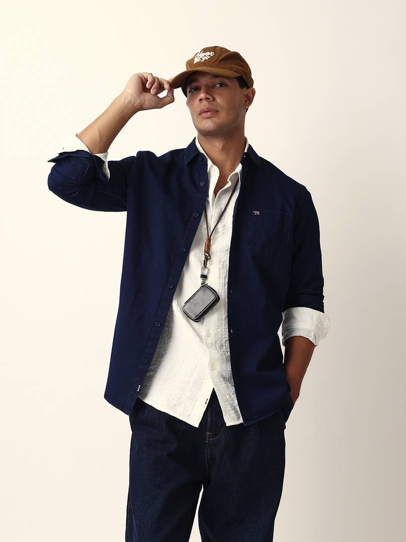 THE BEAR HOUSE Men Solid Casual Blue Shirt