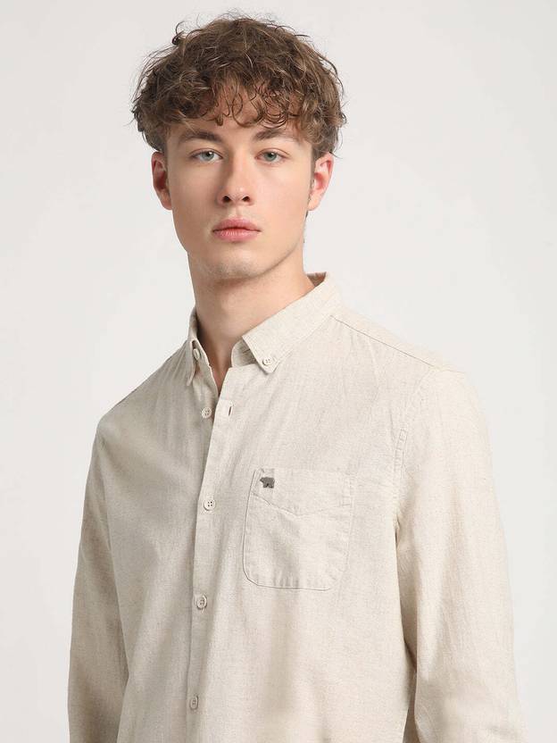 THE BEAR HOUSE Men Solid Casual Cream Shirt