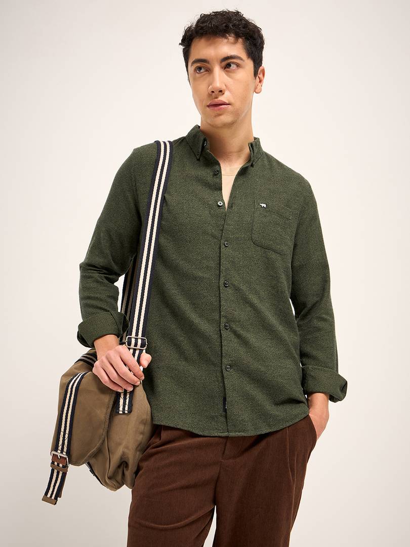 THE BEAR HOUSE Men Solid Casual Green Shirt