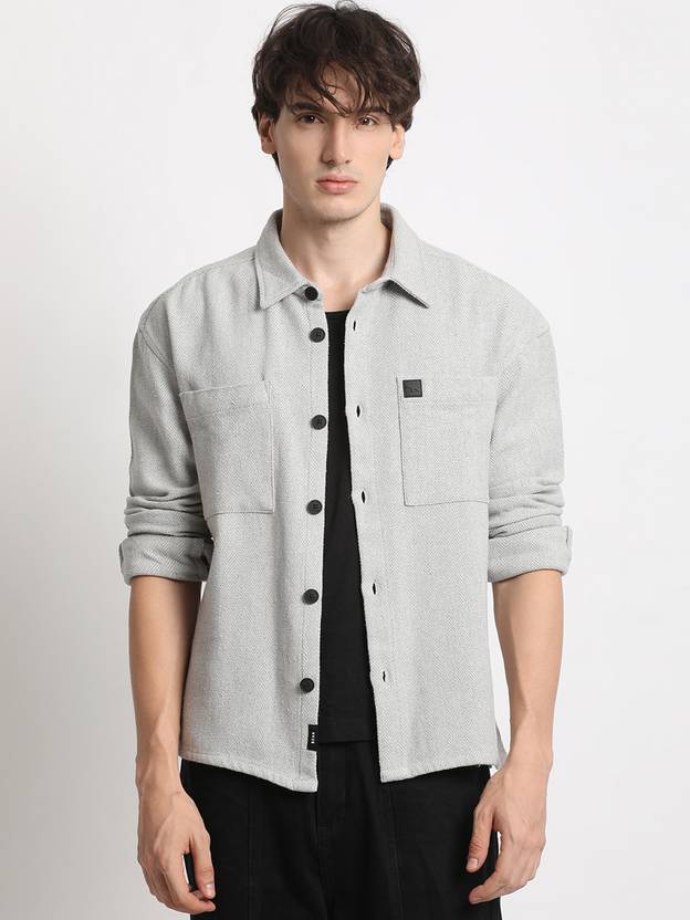 THE BEAR HOUSE Men Solid Casual Grey Shirt
