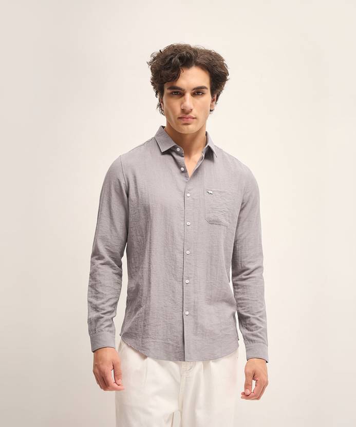 THE BEAR HOUSE Men Solid Casual Grey Shirt