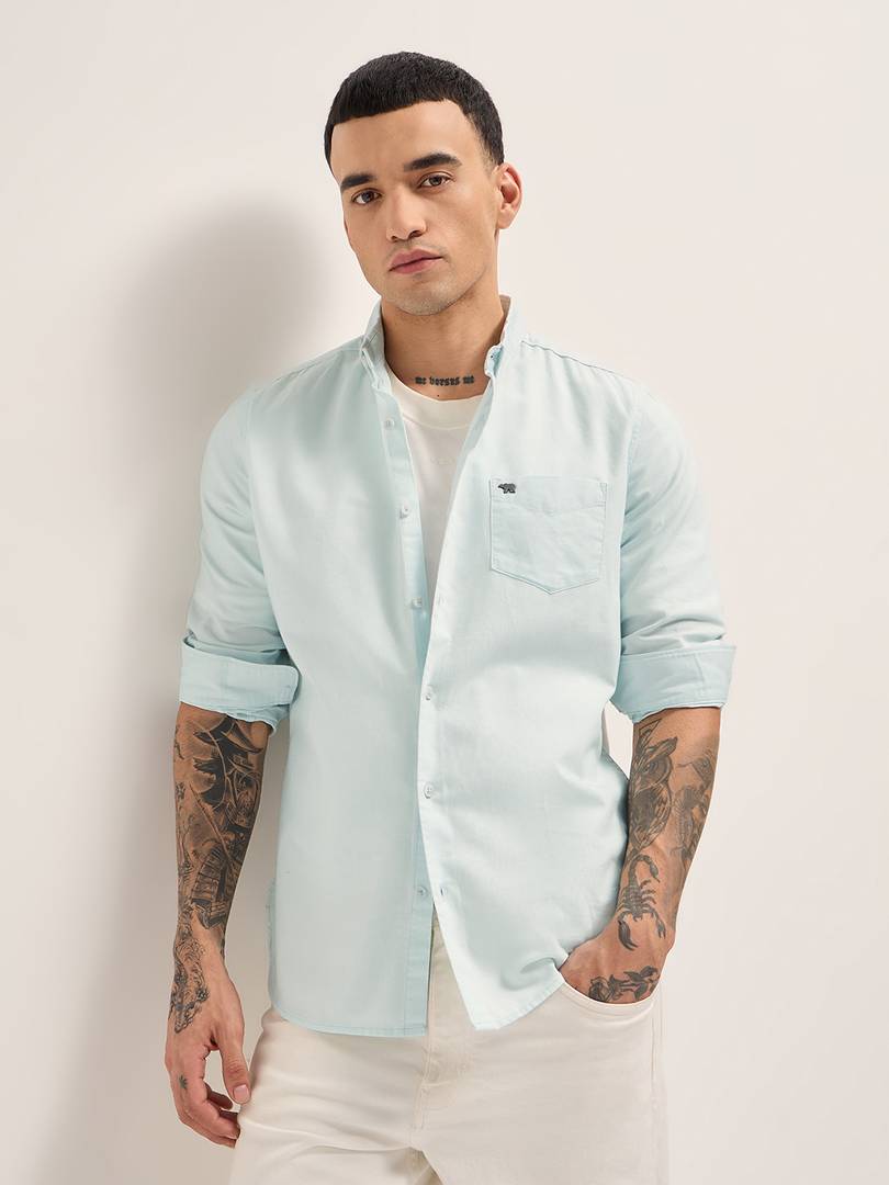 THE BEAR HOUSE Men Solid Casual Light Blue Shirt