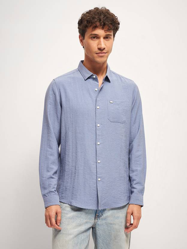 THE BEAR HOUSE Men Solid Casual Blue Shirt