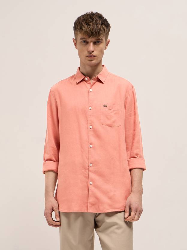 THE BEAR HOUSE Men Solid Casual Orange Shirt
