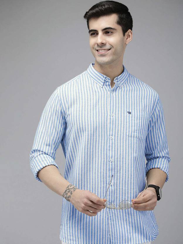 THE BEAR HOUSE Men Striped Casual Light Blue, White Shirt