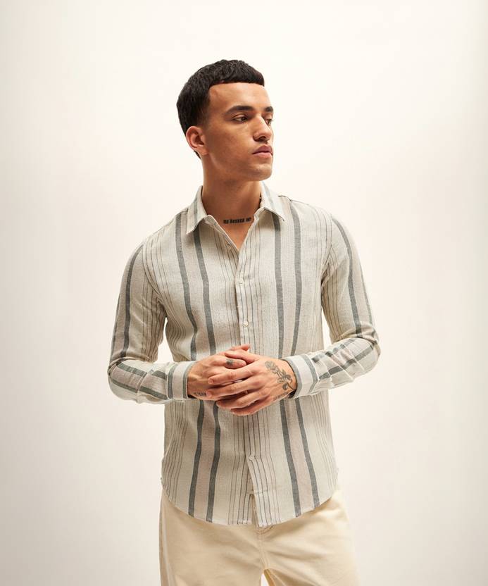THE BEAR HOUSE Men Striped Casual Pink Shirt