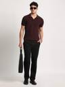 THE BEAR HOUSE Solid Men Polo Neck Maroon T-Shirt