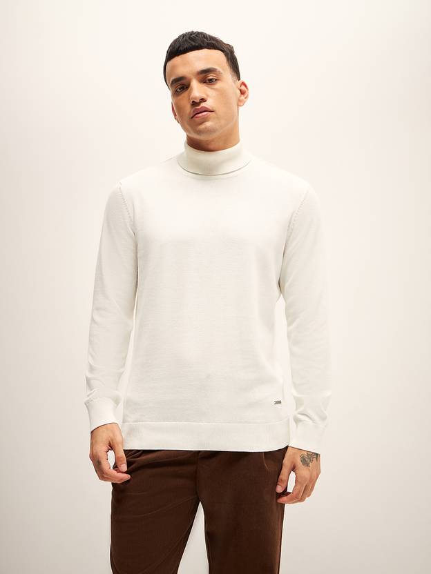 THE BEAR HOUSE Solid Men Turtle Neck White T-Shirt