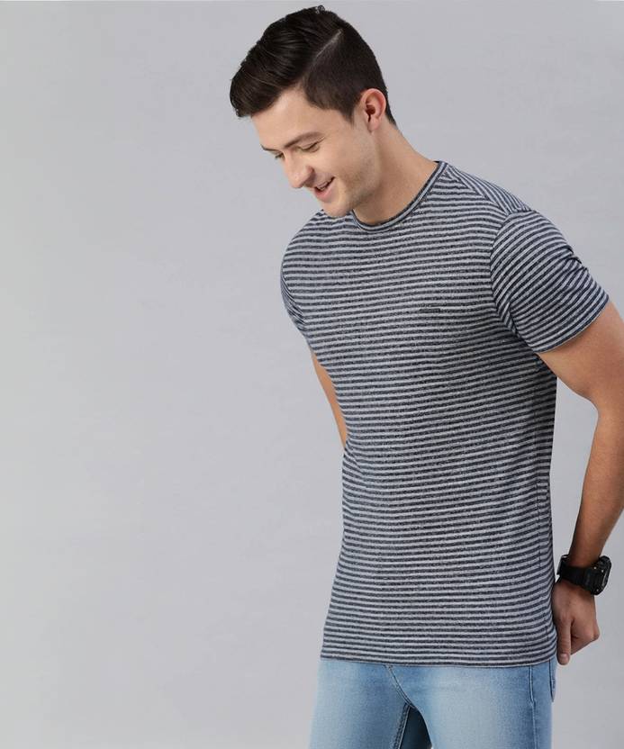 THE BEAR HOUSE Striped Men Round Neck Blue T-Shirt