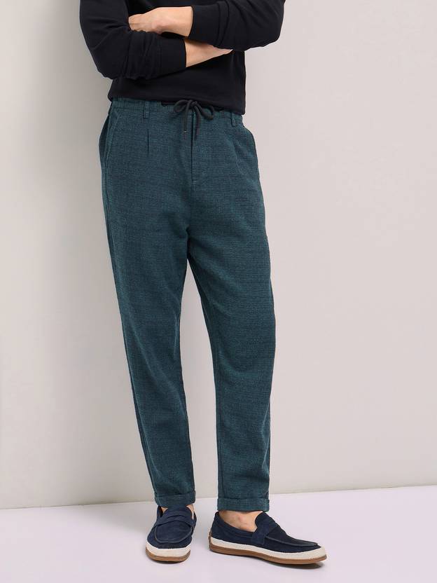 THE BEAR HOUSE Men Tapered Green Pure Cotton Trousers