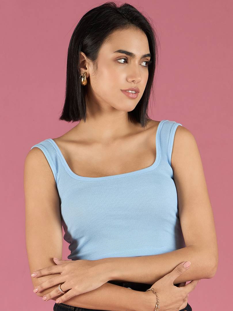 bearbrother Casual Solid Women Light Blue Top
