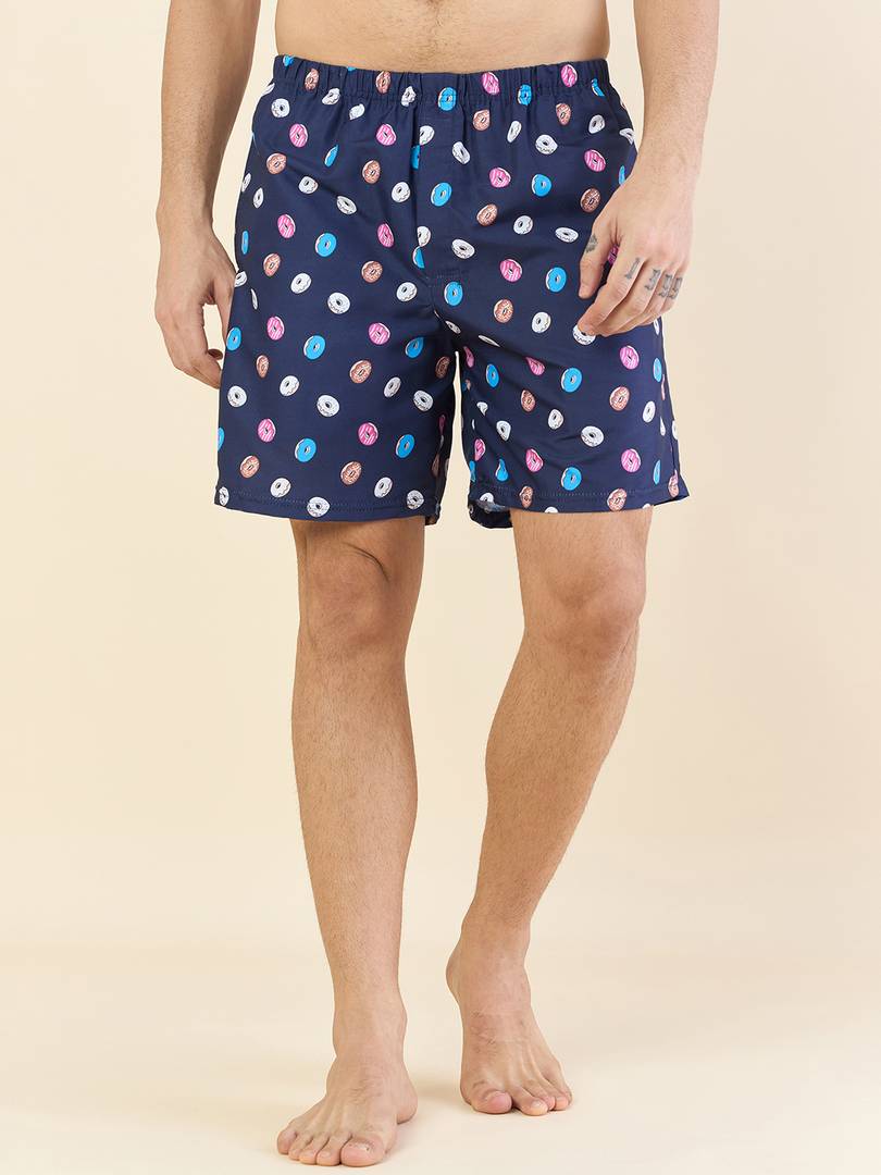 Men Regular Fit Printed Navy Boxer With 2 Slip and 1 back Side Pockets