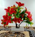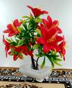 BearPaw Red Lily Artificial Flower Plant for Home Decoration indoor Bonsai Wild Artificial Plant with Pot (24 cm, Red)