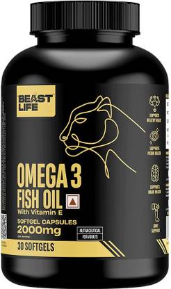 BeastLife Omega 3 Fish Oil 2000 mg Triple Strength Capsules | No Fishy Burp & Taste | (30 Capsules)