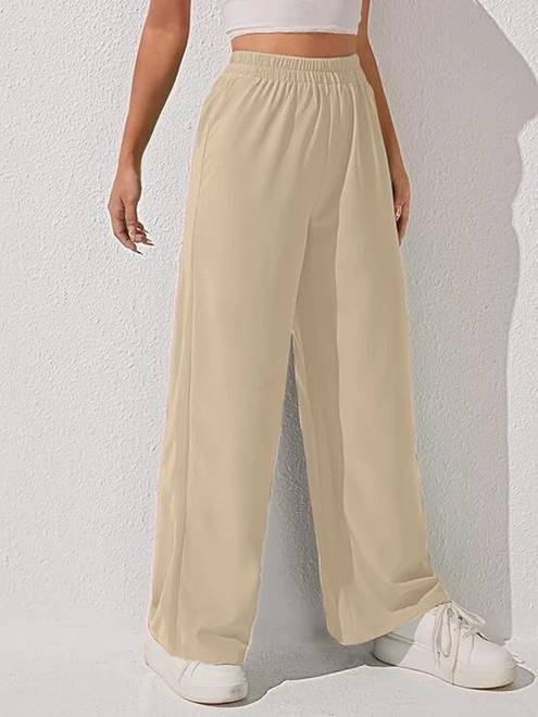 Women's High Rise Beige Regular Fit Trouser