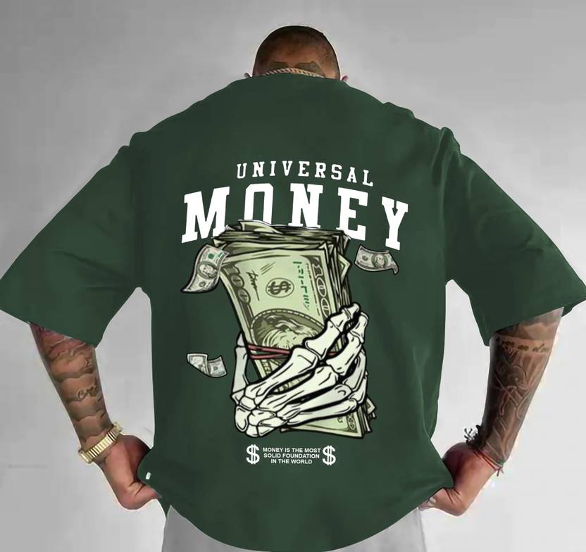 Enter a realm where edgy fashion meets playful creativity with our striking black tee, the Universal Money Tshirts. This distinctive piece is more than just a Tshirts; it’s a daring statement that showcases a captivating graphic of a skeleton clutching money. Ideal for those who enjoy a mix of humor and style, this design is sure to spark conversations. The graphic embodies the spirit of living life to the fullest, reminding us that while financial success matters, it’s the joy, laughter, and shared experiences that truly enrich our lives. Whether you’re out with friends, attending a casual event, or relaxing at home, this Tshirts is bound to attract attention and bring smiles, encouraging others to join in the fun. The Universal Money Tshirts is tailored for those who prioritize both style and comfort. With its oversized fit, this Tshirts drapes effortlessly on the body, offering a relaxed and easygoing vibe suitable for any occasion. The chic 3/4 sleeves add a touch of elegance while keeping you cool and comfortable, making it a perfect choice for year-round wear. Crafted from high-quality, breathable materials, this Tshirts is not only stylish but also durable, ensuring it remains a staple in your wardrobe for years to come. Whether you pair it with your favorite jeans for a casual outing or dress it up with trendy accessories for a night out, the Universal Money Tshirts is versatile enough to complement any look.The Universal Money Tshirts goes beyond typical apparel; it’s a bold expression of individuality and self-expression. This Tshirts encourages you to embrace your unique style and showcase your personality in a fun and fashionable manner. It’s an excellent gift for friends who appreciate quirky fashion or a delightful treat for yourself, adding a standout piece to your wardrobe.