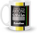 Beautum DON'T LET ANYONE STEAL YOUR SMILE Sandun LUCKY TO HAVE YOU Printed White Ceramic Model No:BDLASZX018787 Ceramic Coffee Mug  (350 ml)
