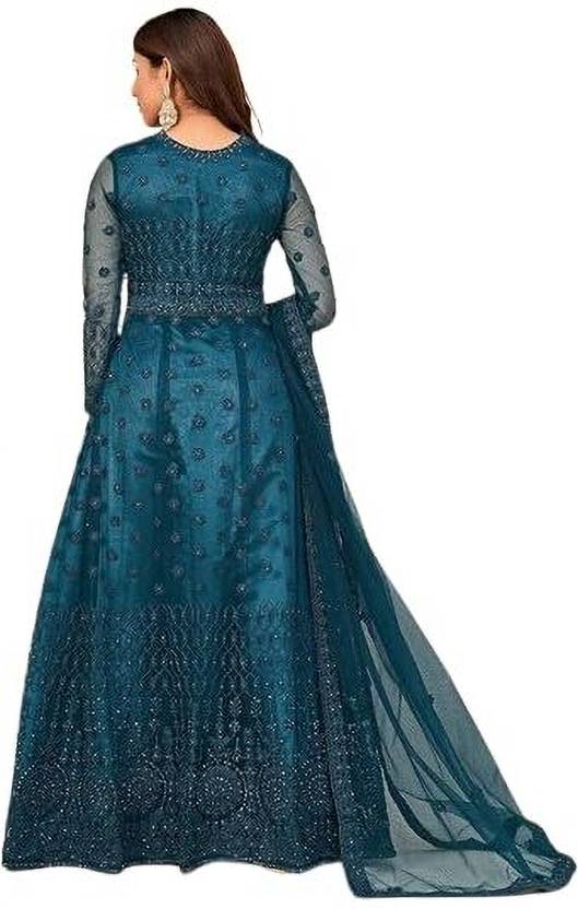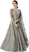 Self Design Net Semi Stitched Anarkali Gown (Grey)