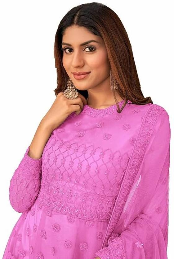 Self Design Net Semi Stitched Anarkali Gown (Grey)