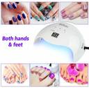 ThAuto Sensor and 4 Timers?: This intelligent nail dryer SUN5 has auto sensor. Hand in, light on; hand out, light off, no need to press any button. 4 timer settings: 10s/30s/60s/99s to choose according to DIY needs. ?Large Space and Removable Tray?: The size of this lamp is 8.7*8*4.3in, roomy to do 5 fingers and toes at one time, and it has removable bottom, easy to do toenails and clean. ?Fast Drying and Time Saving?: 36W high power for quick drying, curing most gels nail polishes in 30 seconds. Fashion appearance, and large LCD screen, ideal for home and salon use.