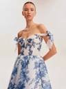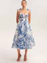 bebe Women Fit and Flare Blue, White Midi/Calf Length Dress