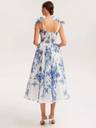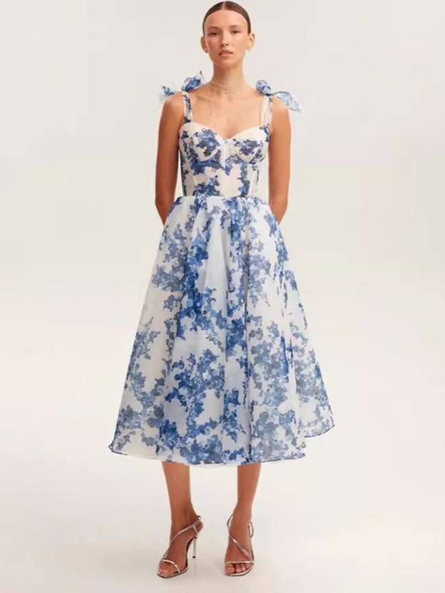 Women Fit and Flare Blue, White Midi/Calf Length Dress