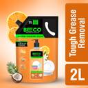 Beco Dishwash Liquid |Orangey Freshness| Tough Grease removal formula| Ecofriendly Dish Cleaning Gel (Orange & Frangipani, 2000 ml)