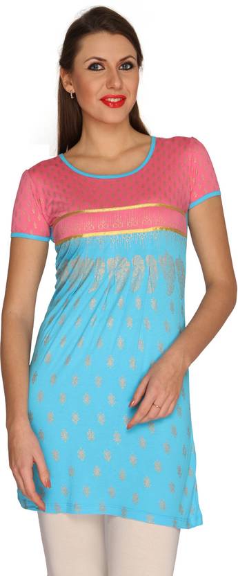 BEDAZZLE Casual Regular Sleeves Printed Women Blue, Pink Top