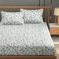BEDCOUDRE Cotton Double Fitted (Elastic) 300 TC Floral Bedsheet (Pack of 1, Pink)