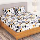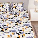 Bedspun Microfiber Double Flat 180 TC Printed Bedsheet (Pack of 1, White, Beige)