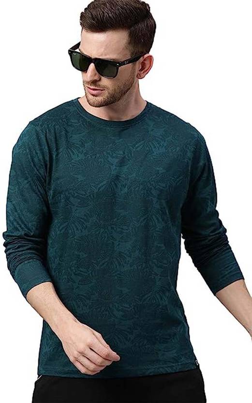 Men Solid Round Neck Pure Cotton Green T-Shirt