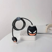 BeeNex Case Cover for iPhone 18W-20W Charger, 3D Cute Black Man Design, Spiral Cable Protector (Black)