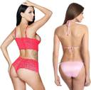 Beera Bra & Panty Set Self Design Red, Pink Lingerie Set