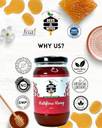 | Nutrient Content | - Calcium Iron Magnesium Phosphorus Potassium Zinc, B-complex vitamins: Including B6, niacin, riboflavin, and pantothenic acid. Vitamin C: Present in minimal quantities., Contains small quantities of amino acids, contributing slightly to the protein content., Rich in antioxidants, including flavonoids and phenolic acids, which help protect the body from oxidative damage., Contains enzymes like glucose oxidase and invertase, which aid in honey's natural antibacterial and digestive properties., Energy: Provides around 64 calories per tablespoon (21 grams), primarily from the natural sugars., Sugars: Mainly composed of natural sugars like fructose (about 38%) and glucose (about 31%), along with smaller amounts of maltose, sucrose, and other sugars.