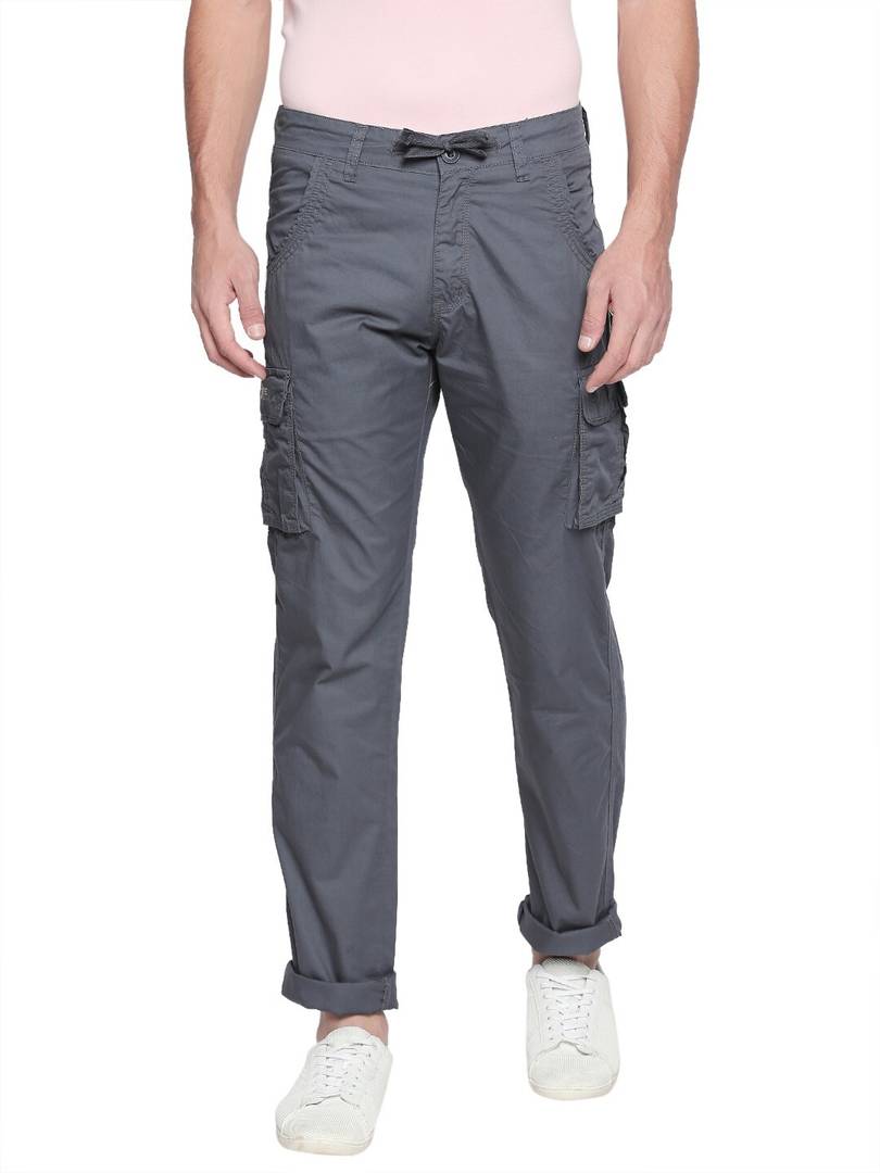 Beevee Mens M grey Solid casual mid-rise cargo pant with straight fit,100% Cotton fabric,has multiple pocket on the front and back, zip fly and button closure,beltloops,Comes with a matching fabric drawstring.