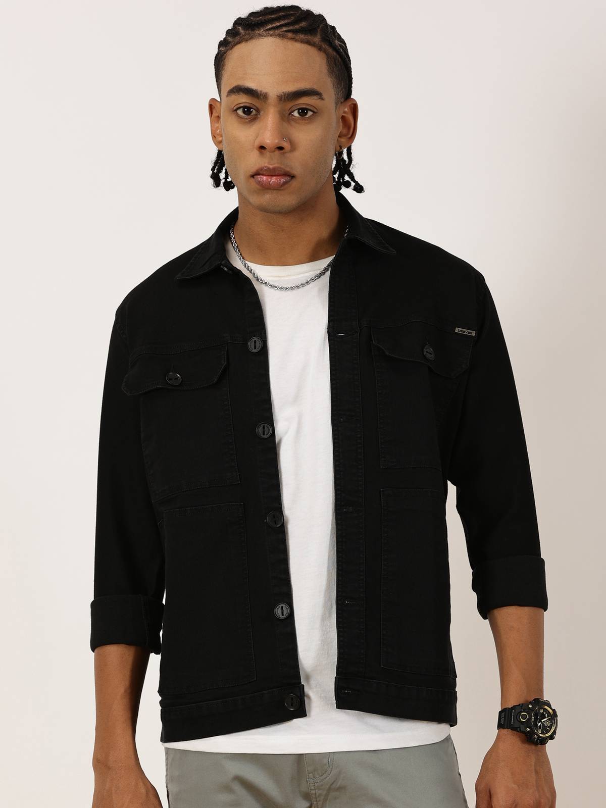 It's a cargo pockets shirt, adding an extra touch of functionality and style. The pockets shirts on the front give it a cool and casual look, perfect for keeping small essentials handy. It's a versatile piece that you can dress up or down for any occasion.