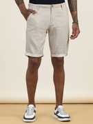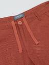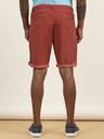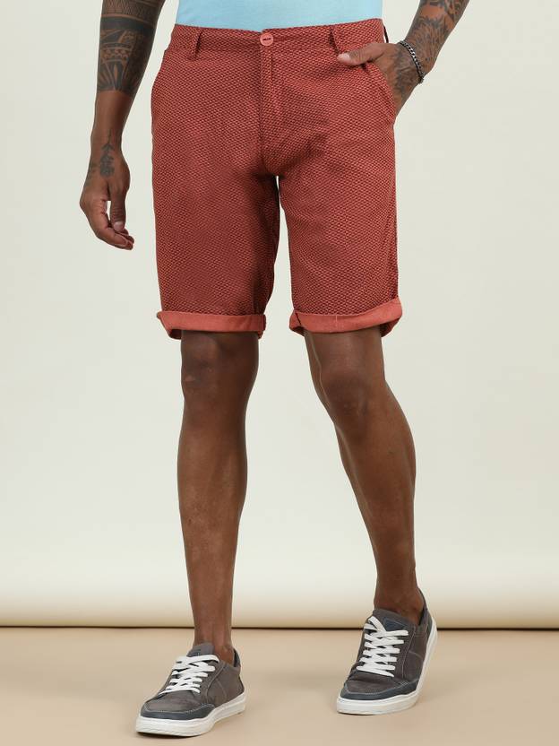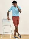 Beevee's rust-colored checked shirt for men offers a regular fit for casual occasions. Model wears size 32, demonstrating a comfortable, no-wash style.