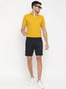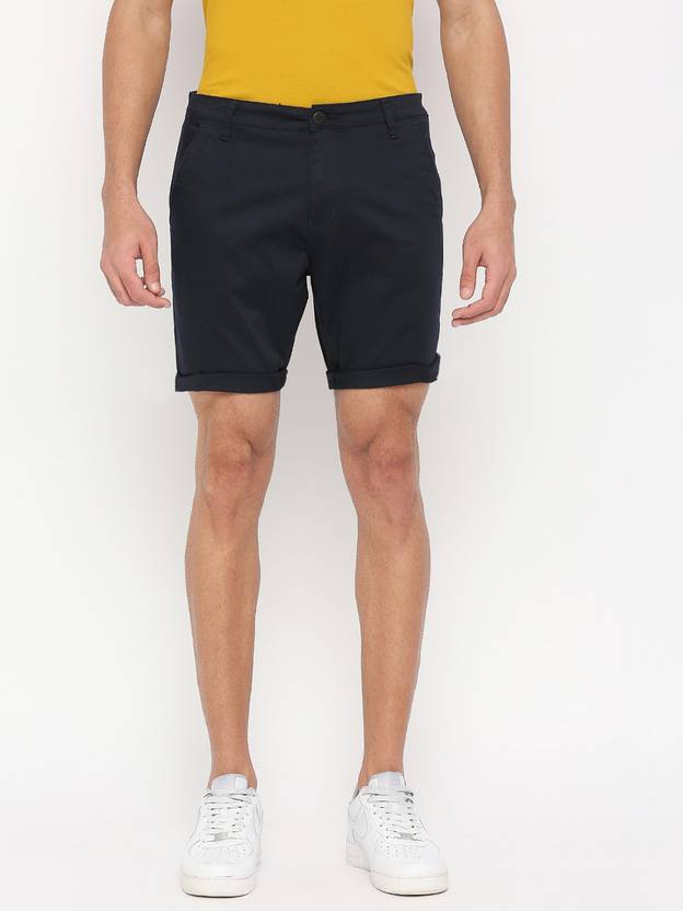 Beevee Mens Navy solid shorts, satin lycra fabric, contrast piping turn ups, has two pockets on the front & two pockets on back, a fixed waistband with belt loops, has zip fly & button closure.