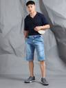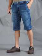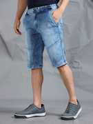 Beevee Mens Stone three-fourth length shorts, denim stretch fabric, turn ups with zip fly and button closure With Drawstring, has two pockets on the front & two pockets on the back,elasticated waistband .