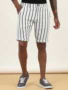 Beevee presents a casual white shirt with vertical stripes for men. This regular-fit style requires no washing. Model showcases size L.