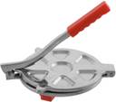APPLICATION-Useful for flatning or pressing puri poori in kitchen.Heavy presser machine ,nearly 1kg with easy operation. ??SIZE-This puri machine is of large size and having diameter of nearly 6 inches. ??ANTI SLIP SOLE-This poori presser is provided with an anti skid/slip sole that does not lets the presser machine move when you press the machine for pressing the peda. ??GRIP-The grip of the handle is provided with non slippery plastic that is textured for optimum grip ??PACKING -The poori presser will be sent to you in fitted,ready to use condition,that means you will not have to fix the handle on you