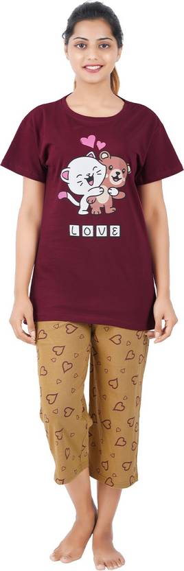 Shop from a Wide Range of Buy That Trendz Printed Top & All Over Print Pyjama Set / Pajama Night Suit Set / Sleep wear Set / Loungewear Set for Super Comfortable and Nice Sleep. Round Neck T-Shirt Crafted Finely in Rich Cotton Fabric to Give That Ease While Sleeping. Paired Along with a Patterned Pyjama Will Give Your Legs the Warmth It Needs.