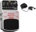 BEHRINGER DIGITAL MULTI-FX FX600 Digital Stereo Multi-Effects Pedal Ultimate digital multi-effects pedal comparable to state-of-the-art studio processors 24-bit high-resolution stereo effects including Flanger, Chorus, Phaser, Delay, Tremolo and Pitch Shifter 2 additional parameter controls to adjust delay time, flanger rate, etc. Blue status LED for effect on/off and battery check Runs on 9 V battery or the BEHRINGER PSU-SB DC power supply (not included) First-class electronic On/Off switch for highest signal integrity in bypass mode High-quality components and exceptionally rugged construction ensure long life Conceived and designed by BEHRINGER Germany Studio effects processors sound really good, but they can bulky, complicated and expensive. Now you can have all the power and great sound of studio-grade, stereo effects processing, thanks to the ultra-affordable, and easy-to-use DIGITAL MULTI-FX FX600. Stellar Sound This studio-in-a-box features Flanger, Chorus, Phaser, Delay, Tremolo and Pitch Shifter, all in mind-blowing 24-bit/40 kHz resolution that turns everyday riffs into 3-D epics from the outer limits. Delightfully Simple Operation Just select one of the six (6) effects with the dedicated FX knob, and then use the two PAR(ameter) dials to fine-tune the effect. The LEVEL control determines how much of the effect is mixed with the original signal. The LED tells you when the FX600 is activated, and the top-quality on/off switch maintains incredible signal integrity in bypass mode. You can power this pedal with either a 9 V battery or our PSU-SB DC power supply (included). Studio effects processors sound really good, but they can bulky, complicated and expensive. Now you can have all the power and great sound of studio-grade, stereo effects processing, thanks to the ultra-affordable, and easy-to-use DIGITAL MULTI-FX FX600. Stellar Sounds This studio-in-a-box features Flanger, Chorus, Phaser, Delay, Tremolo and Pitch Shifter, all in mind-blowing 24-bit/40 kHz resolution that turns everyday riffs into 3-D epics from the outer limits. Chorus: This effect slightly detunes the original signal. A very pleasant detune effect is created in connection with the pitch variation. Flanger: Originally, the flanger effect was generated with two tape recorders running synchronously. The same audio signal was recorded on both machines. If you put a finger on the left spool of one of the machines, the spool and the playback speed are slowed down. The generated delay results in phase shifting of the signals. Phaser: With the phaser, a second, phase-shifted signal is added to the original audio signal. The resulting sound is thicker and above all livelier. Pitch Shifter: The pitch shifter slightly detunes the audio signal. Tremolo: The tremolo effect is achieved by periodic modulation of the input signal level. This results in a continuous change from low to high level that lends a quivering, tremulous sound character. Delay: A delay of the input signal with various repetitions. Simple Operation Just select one of the six effects with the dedicated FX knob, and then use the two parameter dials to fine-tune the effect. The LEVEL control determines how much of the effect is mixed with the original signal. Dependable Operation The bright LED tells you when the FX600 is activated, and the first-class on/off switch maintains incredible signal integrity in bypass mode. And you get flexible powering as well--power the DD400 with a 9 V battery or a DC power adapter (included).
